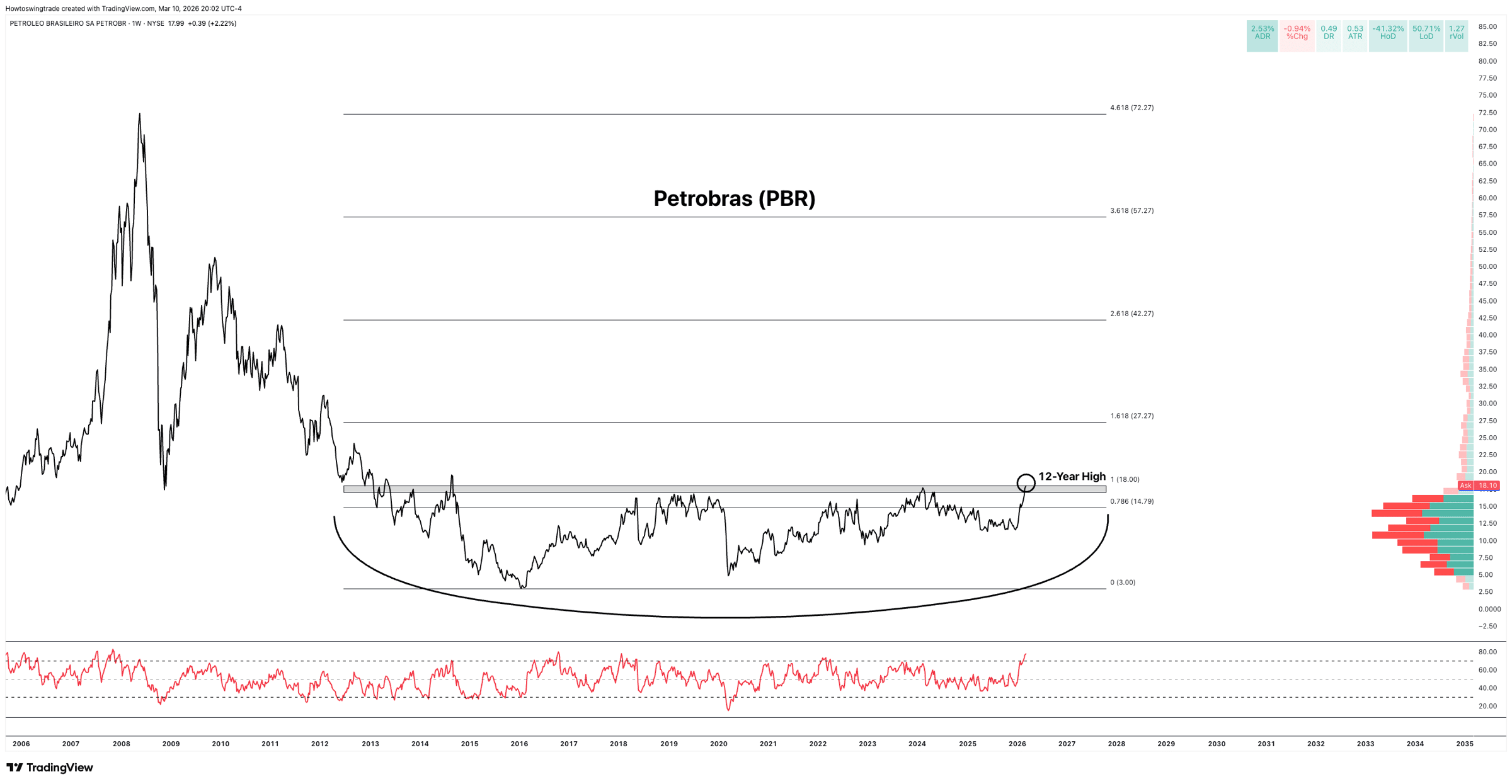 The rotation out of US domestic assets isn't slowing down. It's accelerating. Over the last five sessions, emerging market bonds (EMB) pulled in over $1 billion in inflows. At the same time, US high yield corporate debt (HYG) saw nearly $500 million walk out the door. Think about what that means. Investors are choosing emerging market debt over US corporate junk bonds. The EMB/HYG ratio tells you everything. When it's rising, money is favoring international risk over domestic risk. And right now, it's rising. This lines up with what we've been tracking for months. The flows are moving out of the US and into international markets — equities, bonds, the whole complex. And within that rotation, Brazil keeps showing up. Brazilian equities are attracting some of the largest capital fund flows in the emerging market space right now. And sitting at the intersection of three major themes — energy, emerging markets, and Brazil — is Petrobras (PBR), which is breaking out into new decade highs. Not only are financial institutions buying PBR both directly and indirectly through thematic ETFs, but the momentum in PBR is increasing into 10-year highs with virtually no overhead supply to fight through. We've recently put a position on. And when three capital flow themes converge on a single name, you pay attention. So is this rotation here to stay? Here's what I think: as long as the dollar is under pressure, crude oil stays elevated, and US equities continue to see outflows, international markets have a tailwind that isn't going away. This isn't about one trade or one week. The institutional money is repositioning, and that process takes months, not days. The question isn't whether international stocks will work. Many of our international trades already are. It's which ones, and how to position around them. That's exactly what we're covering this Friday. We're running a live webinar breaking down our full international portfolio — the countries, the sectors, and the specific names where capital is flowing right now. If you've been waiting for a reason to try out the Market Blueprint, this is your shot. Friday. 10:30AM EST. Get our thesis, the trades, and ask your questions. Click here to join us.. and make sure you block off an hour on Friday. Profits Over Prophets, Hamilton |