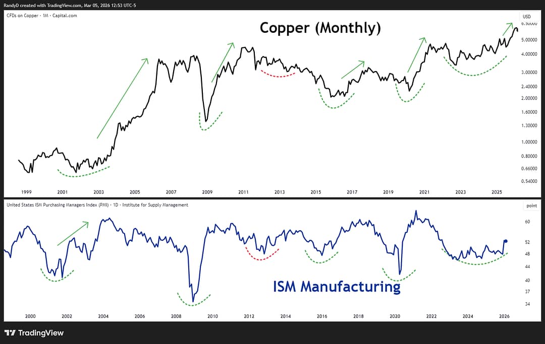One of the best things I've done for TTI is bring on people who are smarter than me in areas I'm not. Randy is our commodities and volatility analyst. He lives in the weeds of metals, energy, and VIX products.. the stuff most people glaze over. When he brings me something, I pay attention. Because it usually means the rest of the market is about to pay attention too. He flagged something this week that I think is worth your time. Hamilton 52.4. That's the latest ISM Manufacturing PMI print.....