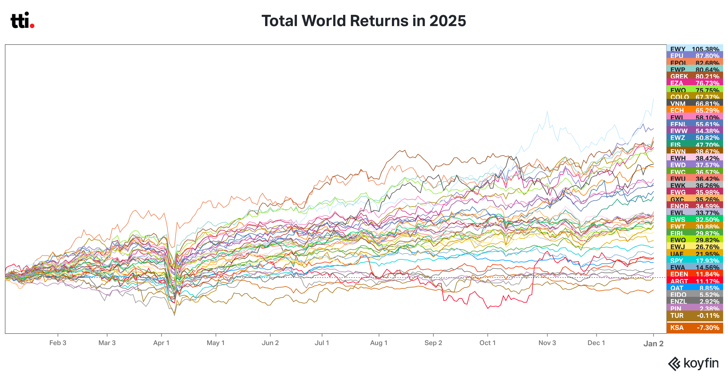 There are weeks where nothing happens. And then there are days where everything happens at once. Today was one of those days.. Earlier this morning we held our January Market Blueprint strategy session. These are my favorite webinars because it gives the TTI community an opportunity to take a step back and look at the bigger picture. We dive into every area of the market: indexes, commodities, bonds, sectors, industries, crypto and more. Our main focus, especially at the start of the new year, was to figure out whether or not we should be buying, selling, or waiting.. So we did what we always do: we counted the uptrends and the downtrends. The Global Bull MarketThe United States stock market had a good year last year. The S&P 500 closed up over 17%, NASDAQ up over 20%, and the Dow Jones Industrial Average and Russell 2000 up and over 12%. Those are respectable numbers in any year.. but consider the fact that we drew down nearly 20% in April? Last year was good. But here's the issue.. When people think about the stock market, they think of only stocks within the United States. Over the last fifteen years, that's been fine. For the most part, the US has obliterated international stocks. But last year was different. Stocks outside of the US absolutely destroyed stocks within the US. Can you even find SPY on the graph? It's down near the bottom at +17.93%. Look at all of the countries that beat the crap out of the United States last year. Does that scream bear market stuff? When Peru is up 87% on the year? I don't think so. That's where a lot of traders and investors got it wrong last year. And will likely continue to get it wrong this year. They're either fully focused on areas of the market that are underperforming.. like US stocks. Or worse -- they're convinced this market is about to fall and are either sitting in cash and waiting or short. Both historically bad choices when you look back at what typically comes before any steep correction: downtrends. We didn't find many. As a matter of fact, we found so few that we realized we needed to be buying again.. Own The Weird Stuff Going UpIt sounds so simple but I promise you that if you spend more of your time focusing on buying the stuff going up versus going down, you're going to make more money. It's not my opinion. It's math. Assets trend and we want to own the stuff trending higher. That's how you make a ton of money. We use the Profits Over Prophets Framework to figure out what we want to own.. Trend. Relative Strength. Momentum. Those are the three key elements to any successful trade. But we go even deeper.. Our goal is to align ourselves within the primary uptrends of the market, focusing on the strongest sectors and industries to give us the greatest statistical advantage to make money. Consider Ero Copper (ERO), a copper miner based in Brazil: We bought this back in November as it broke out into new all-time highs. Yes -- the market was choppy and uncomfortable back then. But that doesn't change the fact that we needed to buy new breakouts as long as the primary trend was higher. And it was. Two months later and ERO is up nearly 25% from our entry. And our options contracts are just now hitting 100% into profits. That means we're ready to Sell the Double on ERO this week. We close half of the trade once it hits 100% into profits to pull back all of the original risk that we put into the trade. That means there are only three available options left for our trade on ERO: We breakeven on the trade should it fail to continue higher. We make a little bit of money if the trade fails to hit our profit targets. We make a LOT of money if the trade continues to trend higher over the course of the trade. We cannot lose on this trade once we Sell the Double. It's literally the best way to manage your winners over the long term. And for those of you with busy schedules.. jobs to work, businesses to run, kids to raise.. this is your secret weapon to making money without being glued to your screen all day. Your Opportunity Starts HereEarlier today we sold three massive wins: Morgan Stanley (MS), JPMorgan Chase (JPM), and Intel Corporation (INTC). We opened all three of those trades months ago, Sold the Double, and then let the trend work for us. All three trades were up and over 100% in profits. Morgan Stanley was over 800%. We then sent out three new trades to open, capitalizing on new trends, themes and opportunities in the market. All three are targeting six months out. Once again, the process continues.. Sell the Double when the new trades hit 100% into profit and then let the trends take over. And the best part? We're focused on areas of the market that are working.. not the FinTwit specials or the hear about on CNBC every morning. I'm talking about Financial stocks, Material stocks.. we're in commodities, we're in uptrends: Like I said, some days everything happens at once.. we had a good day today. Here's your opportunity to start 2026 on the right foot: https://docs.google.com/document/d/1IHn3NaLaV460Qi2Ju08nZLthlxTCZcnujx8R0NeBgvQ All of the info on how to get started with us is in the link above. Profits Over Prophets, Hamilton |