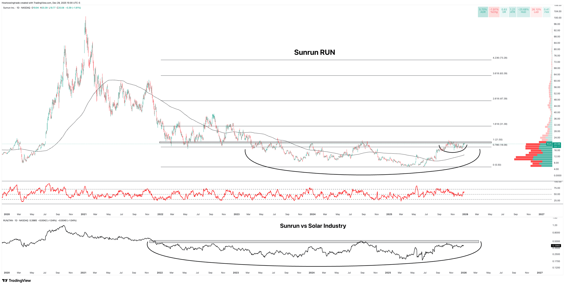 We're constantly looking for new trades, new themes, and new trends to profit off of. As a matter of fact, it's the most important part of all of this. Your number one job as a technical trader is to identify a trend as early as possible.. and take a position! And the end of the year is a fantastic time to go through the market and find those new trends. The earlier we spot where financial institutions are rotating capital into, the better.. because where they're placing their bets now means the potential for huge wins in 2026. And there's one right now that absolutely no one is talking about. Everyone's Talking About The MetalsThe big wins in Gold, Silver, Platinum and more over the last couple of weeks have cultivated the minds of traders and investors more so than at any point this decade. This weekend alone was arguably the most bullish I've ever seen my X feed on Silver and Gold. Ever. When we took profits on our Silver trade last week, many people let me know dumb it was. Silver was going to $100.00 by the end of the year. Book it. Until, of course, they woke up this morning.. While the precious metals remind people today that it's generally preferred to buy prior to price going parabolic, I'm looking for the next big theme. And I think I found one. This year has been dominated by five key industries: Gold Miners (GDX), Metals and Mining (XME), Clean Energy (PBW), Solar (TAN) and Semiconductors (SMH). We're obsessed inside of TTI about owning the strongest areas of the market. It's so important to us that Relative Strength is the second pillar within our Profits Over Prophets Framework. And that means owning the things that are winning the most. Let's check out the Solar industry. Going Green In 2026The Solar industry ETF TAN is up over 50% this year, beating things like Software (IGV) and Internet (FDN) in the middle of an "AI Bubble." Here's what it looks like today: There's a lot to love about this chart. Since the early April bottom, TAN is up nearly 95% and trending higher above an upwards sloping 200-day moving average. That's an important feature we look for when confirming strength -- we want to own things heading higher, as confirmed by the most important moving average in the market. And every time the market pulls back, buyers come in and buy more and more Solar stocks. We can see that by looking at the bottom indicator, the Relative Strength Index (RSI), and taking note that the momentum within the Solar industry has remained firmly above the 50. That means the bulls are unwilling to let the bears come in and influence this new trend. Lastly, we have a beautiful multi-year base breakout in TAN. What the market absolutely loves to do is accumulate as many shares as they can within the industry before letting prices breakout higher. That's exactly what we're seeing in TAN as it traded horizontally for the better part of two years before breaking out this summer and trading into two-year highs. We like TAN. It has all the looks of an industry on the poise of a breakout year. So what's the trade? Looking For The Next Big LeaderThere are a few names on our watchlist for early 2026 in the Solar industry. But one that stands out to me is Sunrun (RUN): Following all of the same characteristics as TAN, RUN has all three of the most important aspects with in our Profits Over Prophets Framework: It's trending higher above an upwards sloping 200-day moving average. It's on the verge of breaking out against the Industry group itself. And it's holding a bullish momentum regime. Trend. Relative Strength. Momentum. Every trade we take must have all three of these characteristics before we take them. There's a great chance of a sustained move higher for RUN following a breakout above 21.50 as the path of least resistance shifts higher. And when this occurs, we'll attack it using both shares and options, implementing critical leverage while managing risk to take full advantage of what this breakout may turn into. If you want to outperform the market, you have to own the things that are outperforming the market. And RUN has all the things we typically see in a potential big winner. The Entire Profits Over Prophets FrameworkWhen I started typing this email I had no intent to run you through an entire POP Framework mini-session but here we are. Everything we do stops with our top down process, looking at the bigger picture in totality first and then diving down into the individual trading vehicles. By stacking as many variables that matter in our favor, the odds of these trades working rises exponentially. And in this case, it meant a market clearly trending higher, an industry group outperforming almost everything else this year, and a stock within the industry on the poise of a multi-year breakout. If this process makes sense to you and you want to learn how to do it yourself, I've made a four video series that you can watch in three hours this week. It's $99 one-time. No subscriptions. No commitments. And if you buy it and decide you want to join us in January, I'll discount $99 off your first month with us. You can find more information about the Profits Over Prophets Framework video series here: https://docs.google.com/document/d/1FbyDlD2T-AGVpzIlk2JtbwUJs-Q7us2Bj5gqNDJVJgM I hope you all have a wonderful short week this week. Profits Over Prophets, Hamilton |