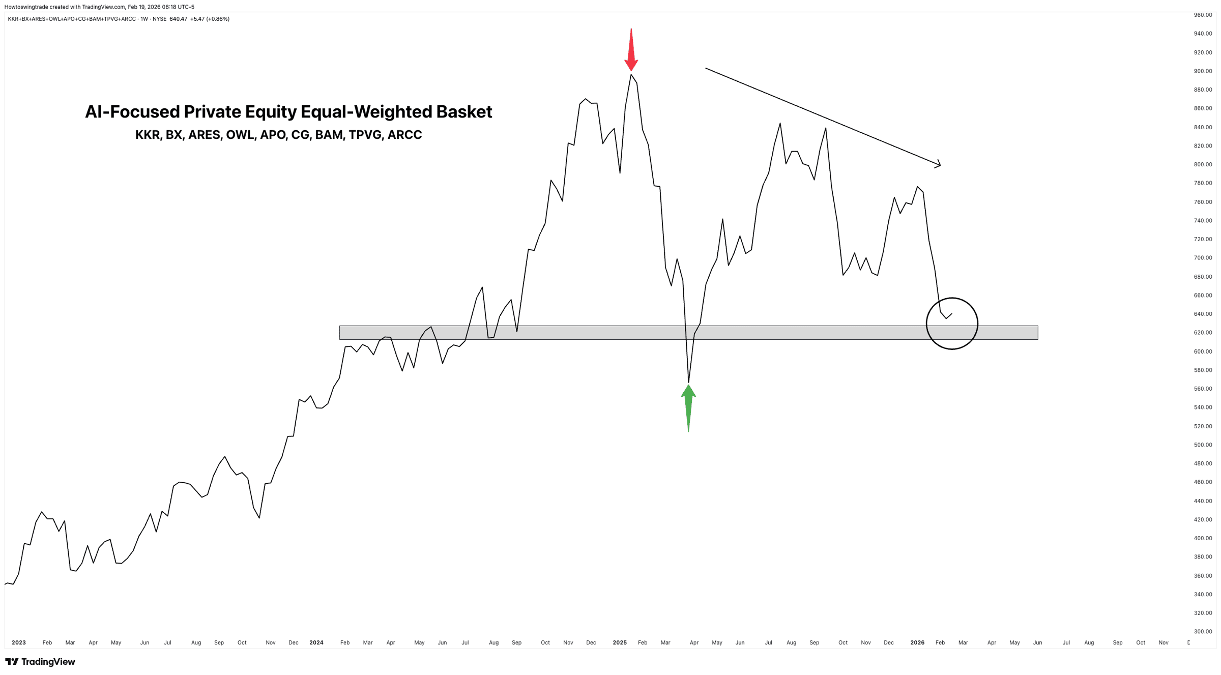 Blue Owl Capital permanently halted redemptions on its private credit fund aimed at retail investors this morning. Read that again. Permanently. For those of you who have been following along, this shouldn't come as a surprise. During our Market Blueprint webinar at the beginning of February, I specifically highlighted the necessity of watching private equity lenders that were wrapped up in massive loans for AI datacenter buildouts. Names like KKR, Blue Owl, Ares, Apollo. I said then: these stocks are already rolling over, and if they don't stop, we have a bigger problem. They didn't stop. And now we're getting confirmation that the problem is real. Why This Matters Beyond Private EquityBlue Owl's fund wasn't some obscure corner of the market. This was a retail facing private credit vehicle.. one of the new wave of products that Wall Street has been packaging and selling to everyday investors as "alternative income." The underlying assets? Loans to companies building out AI infrastructure. Data centers. Cloud buildouts. The physical backbone of the AI trade. When the lenders who funded the AI buildout start locking their doors, it tells you something about the health of what's underneath. And Blue Owl isn't alone. Pull up a chart of any major private equity name right now: The Private Equity Bellwether Basket: