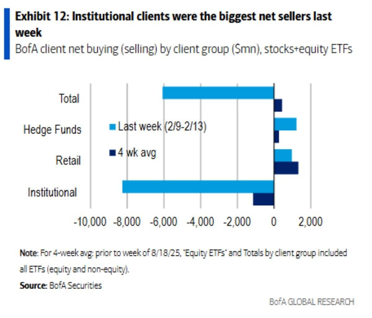 Put these nine names together in an equal weight basket and chart it. Here's what you get: The basket peaked in January 2025.. right when the AI infrastructure trade was at peak euphoria. Then it crashed over 40% by early April 2025. It bounced back over the summer. A nice recovery, sure. But it failed to make a new high. Lower high. Textbook. Now it's rolling over again. That's an important industry group to the AI-trade making lower highs and lower lows while the S&P 500 presses into all time highs. That's a divergence worth paying attention to. The Connection to Tech and SoftwareI've said this before and I'll say it again: we are not buying the dip in tech and software. Not yet. Last week, we talked about the massive de-grossing happening under the hood. Goldman's trading desk said it didn't feel like a flat market day. It wasn't. Hedge funds were aggressively unwinding growth positions and rotating into value. As a matter of fact, last week saw the third most aggressive institutional selling since 2008: That rotation hasn't stopped. And now we're getting a signal from the credit side of the equation that confirms what price has been telling us. Think about it this way: if private equity firms.. the ones who raised billions to fund AI infrastructure.. are seeing their stocks break down and their funds freeze redemptions, what does that tell you about the sustainability of the AI capex cycle? These are the guys on the ground writing the checks. If they're stressed, maybe the trillion dollar valuations on the companies receiving those checks deserve a second look. And that's not my opinion. The market is already doing it. This doesn't mean the AI trade is dead.. I certainly don't think it is. It means the easy money phase might be over. And it means the stocks that got pulled higher on AI hype may be the most vulnerable. Software stocks have been telling you this for weeks. Internet stocks have been telling you this. And now private equity is confirming it. What We're Doing About ItOur approach hasn't changed. We follow price, not narratives. And price is telling us: