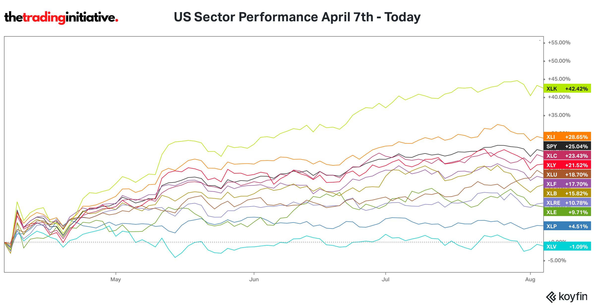 Since the market bottomed on April 7th, there’s been one clear story. It’s been Tech.. and then everything else. The Technology sector is up 42.42% since that low. The next closest sector? Industrials, up 28.65%. S&P 500? Up 25.04%. This isn’t defense. This is leadership. And it’s not even close. Every major move in this market continues to flow through Tech. That’s where the momentum is. That’s where the profits are. And the funny thing is.. After what we saw earlier this year, that wasn’t supposed to happen. The Reset That Set It All UpFrom February through April, Tech got crushed. We’re not talking about a cute little pullback.. We’re talking about a near 30% drawdown in the sector. One of the largest companies in the world, Nvidia, lost more than 40% of its market cap. That’s not seasonal weakness. That's the kind of move you expect in a bear market.. not the middle of a rally. After a year of doing nothing, the sector got crushed.. and still bounced. That’s what real leadership looks like. The kind that resets sentiment and clears the runway for something bigger. This is why April 7th matters. It wasn’t just another low on a chart. It might have been the bottom that launched a brand new leg in a new bull market for Tech. Since that day, look at what’s happened: And then everything else. So yeah.. maybe you should own more Tech. Because that's what the market is telling you is working. That's where all the alpha is. That's where all the institutional flow is going. And that's where the market leadership continues to show up. You can argue semantics. Yesterday I listened to an elevator pitch about why owning Insurance stocks is a good idea. That's totally fine if you're OK with 5% this year. I am not. We’ll trade momentum. And while everyone else is still debating about whether or not Tech has topped.. We’ve been watching one chart very closely. You know the one. Tech vs the broader market. If that breaks out into new all-time highs — which looks more likely by the day — then it’s not just Tech’s market. It’s Tech’s world. You in or not? P.S. If you missed last night’s Monthly Market Blueprint, no worries. You can still get full access to the replay — including all the trades we’re setting up for August, plus the downloadable slides and playbook. This is part of our Monthly Market Access membership. If you’re serious about staying aligned with leadership and prepared for what’s next, this is where you belong. Just reply “Interested” and I’ll send you the details. Profits Over Prophets, Hamilton |